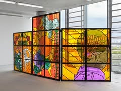 Ihsan Saad Ihsan Tahir cleverly uses acetate to construct a large-scale stained glass-esque installation. He revives the aesthetics of the art form, bringing contemporary Arab life into focus by challenging systems of representation and giving tradition a modern edge. (Wish we could have seen this in person!)